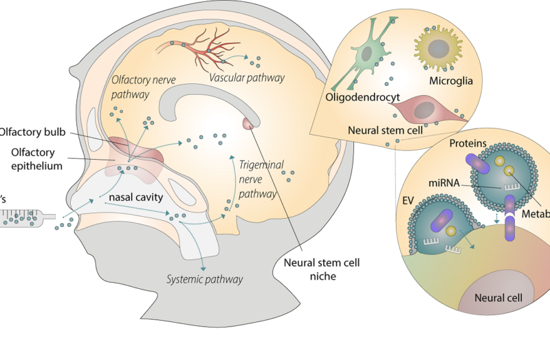 In this project, we aim to unravel the effects of milk EVs on the injured preterm brain. We investigate the in vitro functional effects of milk EVs on neural cell types using multi-omics techniques. In vivo, we focus on the migratory capacity of milk EVs to the brain and the therapeutic efficacy of intranasal milk EV administration on preterm brain injury. In the clinical setting, we explore the feasibility of intranasal administration of EV-containing milk plasma to preterm infants with brain injury (post-hemorrhagic ventricular dilatation), and assess effects on neuroinflammatory and neuroregenerative markers in cerebrospinal fluid. The goal is to develop a protocol for a first-in-human trial to evaluate the efficacy of intranasal milk EV therapy for preterm brain injury.
