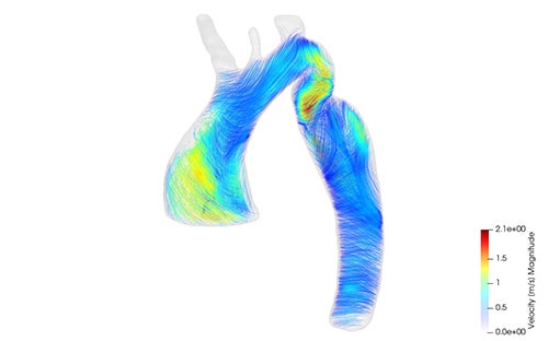 A patient with a congenital heart defect is usually not repaired or finished after one operation. He remains a patient for life. After surgery on the aorta, for example, residual stenosis often remains (an aortic arch that is too narrow) due to scar tissue, for example. As a result, patients maintain symptoms such as headaches, high blood pressure, cardiovascular disease throughout their lives. They take medication for the rest of their lives. Maartje: “4D MRI and CFD not only help to properly map the original defect, but also to assess whether or not the residual symptoms will lead to complaints and can be treated.”
