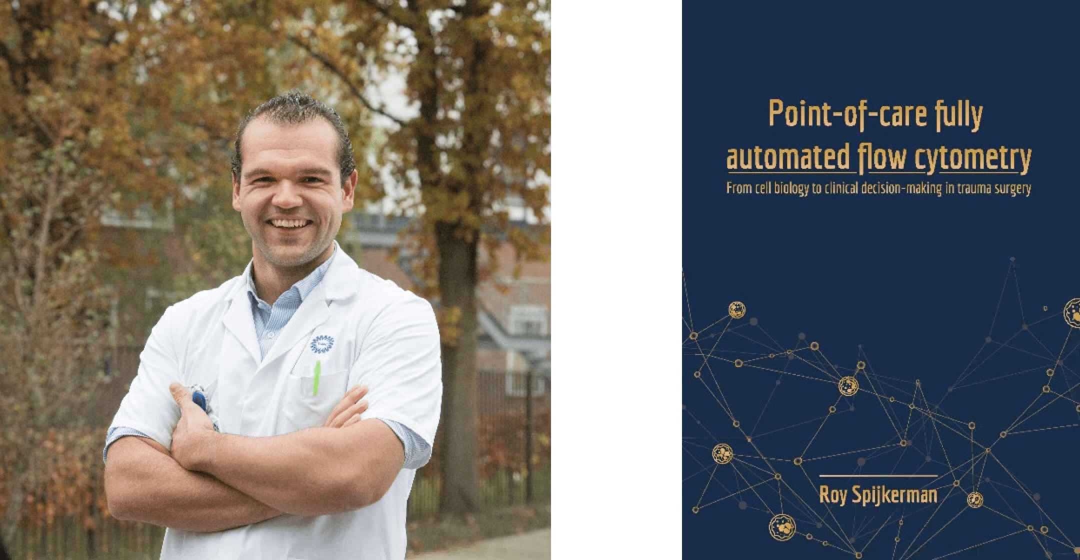 Roy Spijkerman on the practical applicability of fully automated flow cytometry: “In our research, we explored fully automated flow cytometry – the latest development in cytometry – in traumatology. With this new technique, recently also implemented in daily clinical care at the traumatology department of UMC Utrecht, analysis of the immune system can be executed much faster, better and cheaper. In addition, it no longer needs to be performed in a specialized laboratory, but can also be done in a point-of-care setting. For example, in the emergency room, in the intensive care unit, in general practice or in a field hospital. These findings will allow for better immuno-based precision medicine at the trauma ICU, with the outlook of saving more lives in the future.”